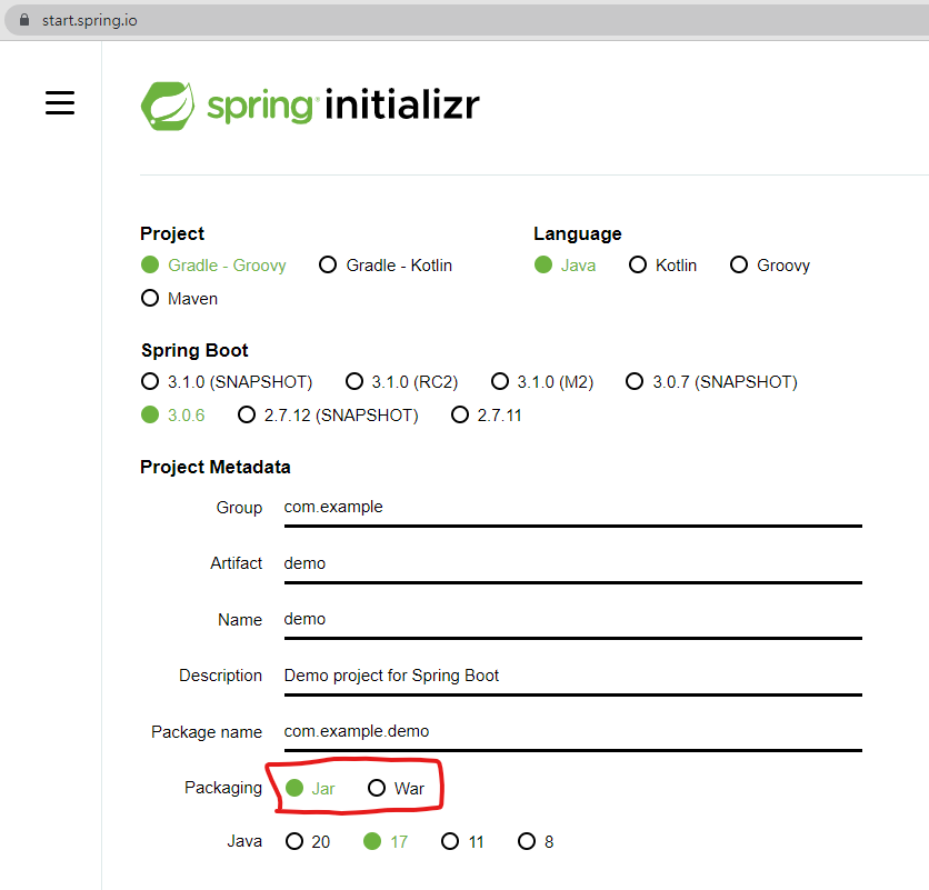 start.spring.io에서 Jar로 프로젝트를 생성한 이후에 War로 변경하는 방법